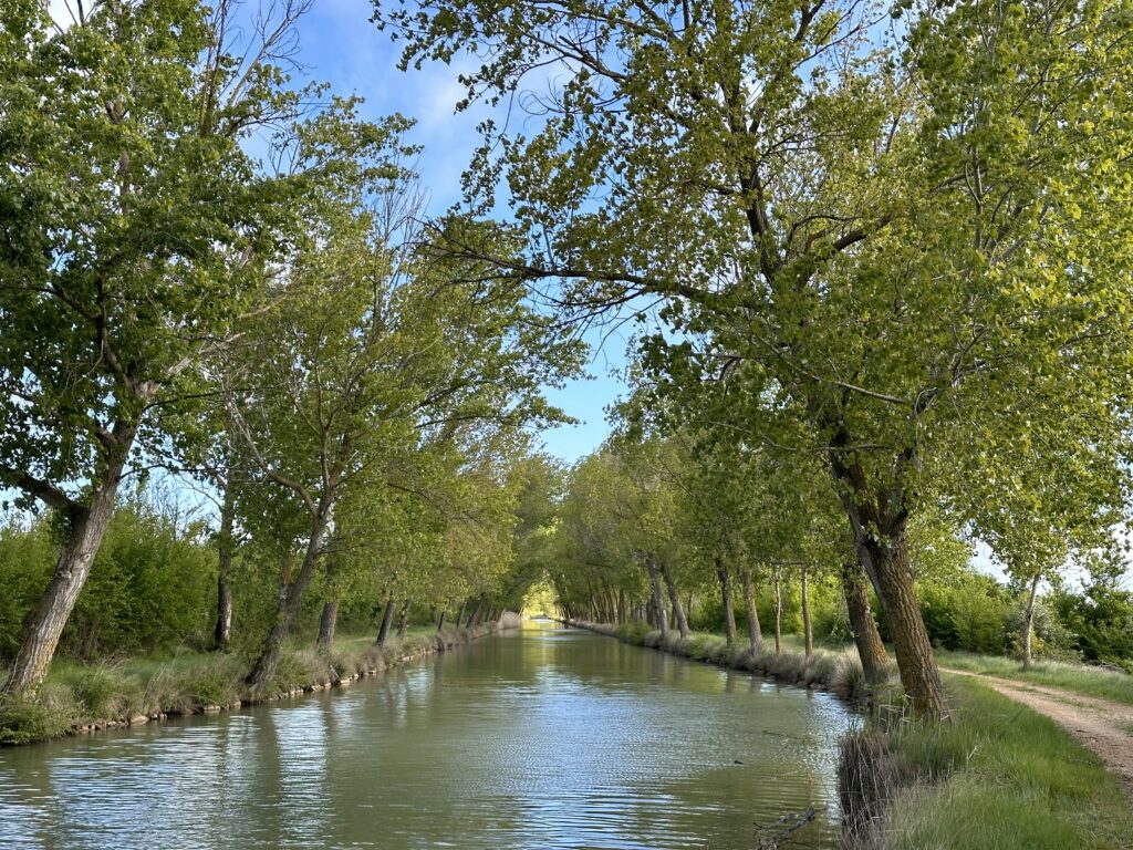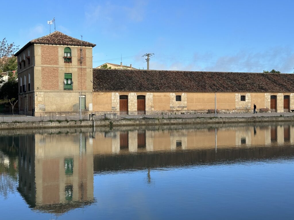 Today was one of the most beautiful days! Despite the long tour yesterday, I made good progress. In a small village, I struck up a conversation with a lady who happened to run the bar and also had a key to the village church. She kindly unlocked it for me, and I was thrilled: I wouldn’t have expected such an interior in such a small church! The altar was beautifully crafted. I’m very grateful for the opportunity to peek inside such a church for once! Also, I managed to avoid the rain showers today, which I saw pouring down on either side. Now I’m sitting in a very cozy and friendly hostel. I’ve already received a little piece of music as a gift here! If my feet cooperate tomorrow, I might be able to finish the Camino de Madrid.