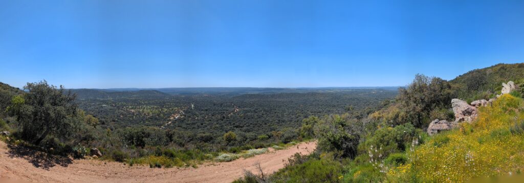Ich achtete auf meinen Wasservorrat und fand eine malerische Stelle für eine Pause an einem kleinen Flusslauf. Hier merkte ich, dass ich bereits einen guten Teil meines Ballasts vergessen hatte und völlig zufrieden auf einer Bank saß und meinen Hummus löffelte. Nach einem unfassbar steilen Aufstieg, bei dem die meisten Mountainbiker erstaunt abstiegen, erwartete mich beim Mirador del Cerro del Calvario ein traumhaftes Panorama.